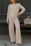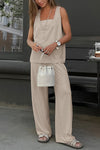 This khaki three-piece set includes a simple knitted top, a matching vest, and trousers, crafted for effortless coordination. The soft knit fabric ensures comfort and breathability, while the understated design allows versatile styling for both casual and elegant occasions. Perfect for layering or wearing alone, each piece combines practicality with a refined, minimalist aesthetic.