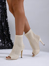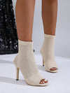 These Neo-Noir stiletto sock boots blend modern design with comfort, featuring an open-toe silhouette crafted from breathable knitted fabric. The slender stiletto heel adds elegance and lengthens the silhouette, while the stretchy sock fit ensures a secure yet flexible wear. Ideal for fashion-forward individuals seeking a sophisticated edge with lasting comfort.