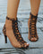 Side mesh paneled leopard lace-up stiletto heel peep-toe sandals