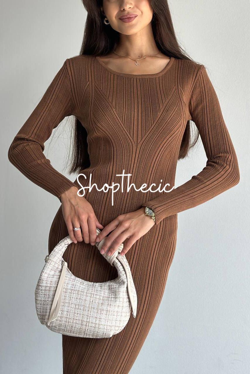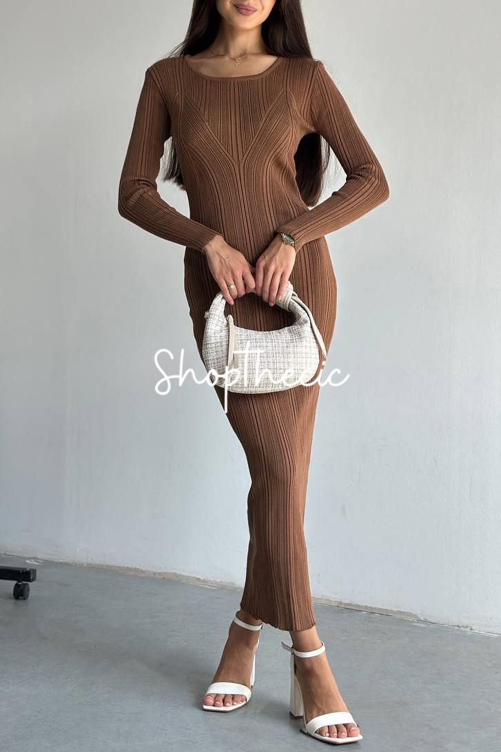 Elegant stretch round neck slim knit dress$60.00 USD