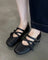 Sheepskin leather round toe cross strap flat Mary Jane shoes