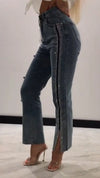 Diamond Patchwork Design Slit Slim Jeans Elevate your denim collection with these meticulously crafted slim jeans featuring an intricate diamond patchwork design. The strategic slit detailing adds contemporary edge while maintaining a refined silhouette. Constructed with precision tailoring, these jeans deliver a flattering fit that transitions seamlessly from casual weekends to elevated evening wear. The patchwork pattern showcases expert craftsmanship, creating visual interest and dimension. Perfect for those who appreciate distinctive design elements paired with timeless denim quality. A versatile staple that commands attention through thoughtful construction and modern styling.