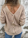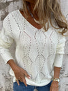 Reversible hollow leaf pattern V-neck long-sleeved knitted sweater