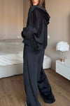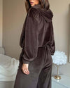 Elevate your casual wardrobe with this Suede Hooded Zipper Cardigan and Elastic Wide-Leg Pants Two-Piece Set. The soft suede cardigan features a convenient zipper and hood for adjustable comfort, while the elastic wide-leg pants provide effortless movement and a flattering silhouette. Designed for both style and ease, this set offers versatile layering and all-day wearability. Perfect for relaxed outings or sophisticated leisure, it balances comfort with modern tailoring.