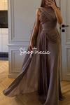 Slip into sophistication with this stunning grayish-purple evening gown that's equal parts glamour and grace. The luxurious satin fabric drapes beautifully, while delicate pleated ribbon details add texture and visual intrigue. Perfect for galas, weddings, or any occasion where you want to turn heads and feel absolutely fabulous. This showstopper combines timeless elegance with modern flair—because looking incredible should be fun!