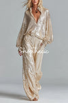 Sparkle and strut in this show-stopping two-piece set! The sequined half-zip top features a chic stand-up collar that commands attention, while the matching wide-leg pants deliver effortless elegance and comfort. Perfect for nights out, parties, or whenever you want to turn heads. Mix, match, or wear together—this dynamic duo adapts to your style. Shimmer, shine, and own the room!