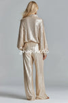 Sequined stand-up collar half-zip top wide-leg pants two-piece set
