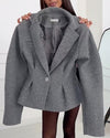 Sweet short single-breasted one-button long-sleeved suit collar woolen coat