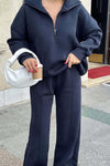 Thrifted Vibes half-open pullover sweatshirt and pants two-piece set