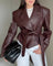 Crafted from premium leather, this belted motorcycle jacket combines classic edge with contemporary style. The structured silhouette features a cinched waist belt that defines your frame while the cropped length offers versatile layering options. Sharp collar detailing and functional hardware deliver authentic moto credentials, while the refined construction ensures durability through seasons of wear. Perfect for elevating casual outfits or adding attitude to evening looks.