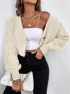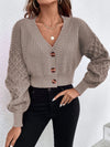 V-neck drop shoulder sleeve button-down cropped knitted cardigan