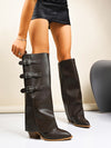 Pointed toe chunky heel belt buckle Boots with detachable gaiters / Gaiter boots