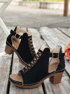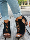 Chunky high heel open toe hollow buckle Roman sandals