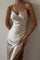 Satin-Hosenträgerkleid mit Schlitz und mittlerer Wadenlänge