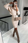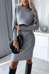 Ribbed knit long-sleeved top and camisole dress two-piece set