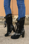 These A Slow Dance suede mid-calf boots combine elegance with timeless style. Featuring a lace-up design that offers adjustable comfort and support, the high heels enhance posture and add a refined silhouette. Crafted from soft suede, they deliver both durability and a luxurious touch, making them an excellent choice for sophisticated, everyday wear or special occasions.