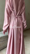 Crafted from luxurious silk, this elegant pink long dress combines timeless sophistication with refined comfort. The flowing silhouette flatters the figure while the included shawl adds versatility for layering and warmth. Perfect for formal occasions, evening events, or upscale gatherings, this piece transitions seamlessly from day to night. The premium fabric drapes beautifully, creating an understated yet striking presence. An investment in classic elegance that transcends seasonal trends.
