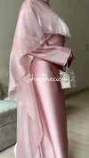 Elegant pink silk long dress with shawl