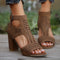 Peep Toe Hollow Out Back Zipper Chunky Heel Sandals