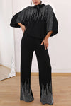Rhinestone three-quarter sleeve top and wide-leg pants two-piece set