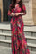 Unrestrained rose red printed short-sleeved long dress