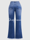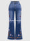 High-elasticity frayed hem and embroidery flared jeans