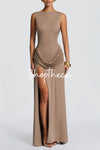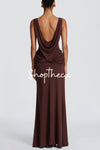 Calla Lily backless draped slit maxi dress