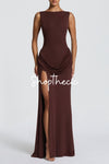 Embrace elegance with this stunning Calla Lily backless maxi dress. Featuring a graceful draped design and daring slit detail, this floor-length piece combines sophistication with modern allure. The open back creates a striking silhouette perfect for evening events, special occasions, or making a bold statement. Crafted for those who appreciate refined style with an edge, this dress transitions effortlessly from cocktail parties to formal gatherings. A timeless investment piece that celebrates confidence and grace.