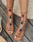 Ces sandales romaines plates sont ornées de pierres précieuses colorées éblouissantes qui ajoutent une touche d'élégance à n'importe quelle tenue. Profitez du confort d'une semelle plate tout en faisant une déclaration de mode. Parfait pour les journées d'été ou une soirée. Améliorez votre garde-robe avec ces sandales élégantes.