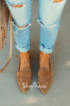 Preppy low-heeled pointed-toe suede shoes