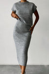 Sleeveless knitted pullover top and fitted long skirt two-piece set