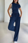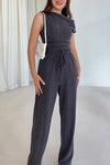 Ensemble deux pièces haut sans manches à col incliné et pantalon droit ample