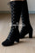 These square toe lace-up boots combine contemporary style with practical design. Featuring a sturdy block heel for stability and comfort, they include a side zipper for easy on and off while maintaining a sleek silhouette. The lace-up front allows for an adjustable fit, making these boots ideal for both casual and dressier occasions. Crafted to provide lasting wear, they offer a modern update to versatile footwear essentials.