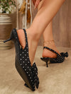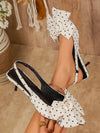 Adoptez une élégance ludique avec ces charmantes sandales à talons hauts à pois et nœud. Le motif à pois fantaisiste, associé à un délicat nœud, apporte instantanément une touche d'originalité à toutes vos tenues, tandis que la bride arrière assure un maintien sûr et confortable. Parfaites pour sublimer un look décontracté ou ajouter une note d'originalité à une occasion plus habillée, ces sandales affichent un style plein de charme. Le talon haut allonge la silhouette et insuffle une touche de glamour vintage à votre garde-robe.