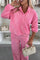 Cet ensemble deux pièces se compose d'une veste sweat-shirt boutonnée à col montant et d'un pantalon assorti, alliant confort décontracté et silhouette raffinée. Le col montant apporte structure et modernité, tandis que la matière sweat-shirt assure douceur et aisance de mouvement. Idéal pour celles qui recherchent une tenue polyvalente, parfaite pour passer d'une journée décontractée à une occasion plus raffinée.