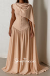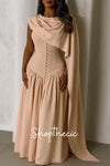 Round Neck Buckle Patchwork Shawl Elegant Temperament Dress