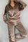 Ensemble deux pièces veste à manches longues et pantalon large en daim à imprimé léopard contrasté