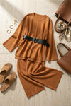 L'eleganza senza sforzo incontra la comodità in questo dinamico duo! Il nostro top ampio in maglia con cintura si abbina perfettamente a pantaloni a gamba larga elasticizzati a vita alta per un look allo stesso tempo rilassato e curato. La morbida maglia cade magnificamente mentre la cintura regolabile scolpisce la silhouette, e quegli ampi pantaloni a gamba larga? Sono i tuoi nuovi migliori amici per la comodità di tutto il giorno. Mescola, abbina o indossa insieme: questo set è il tuo biglietto d'ingresso per apparire intenzionalmente alla moda senza troppi sforzi.