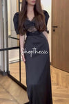 Abbraccia l'eleganza vintage con questo sorprendente abito lungo, caratterizzato da una lusinghiera scollatura a V e delicati dettagli in pizzo. Il giocoso motivo a pois aggiunge un fascino senza tempo, mentre le maniche corte offrono una copertura confortevole. Realizzato per una silhouette raffinata, questo capo lungo fino a terra si adatta perfettamente alle occasioni diurne e serali. Perfetto per chi apprezza lo stile classico con un tocco contemporaneo.