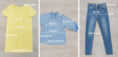 - Bust: Measures across the chest of the top from underarm seam to underarm seam and then doubled