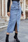 Buttoned Slit Denim Skirt