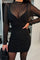 Black long-sleeved translucent mesh patchwork hip dress