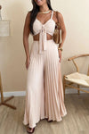 This sophisticated two-piece set features a sleek camisole top paired with pleated wide-leg pants, combining comfort with refined elegance. The camisole's minimalist design complements the fluid movement of the pleated trousers, creating a versatile ensemble suitable for both professional and casual settings. Crafted for ease of wear and style adaptability, this set offers a polished look while ensuring all-day comfort and effortless grace.
