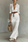 Elevate your everyday style with this chic shirt dress that's anything but ordinary. The flattering V-neck frames your face beautifully, while irregular pleats add movement and visual intrigue to every step. Versatile enough for the office or weekend adventures, this piece effortlessly transitions from day to night. Slip it on with sneakers for casual vibes or dress it up with heels for something more polished. A wardrobe essential that proves elegance doesn't have to be predictable.