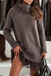 High-neck knit sweater lace-hemmed vest dress two-piece set