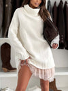 Elevate your layering game with this sophisticated two-piece ensemble. The high-neck knit sweater provides warmth and structure, while the lace-hemmed vest dress adds refined texture and visual interest. Versatile styling options let you wear pieces together for a coordinated look or separately to maximize your wardrobe. The quality knit construction ensures durability, and the delicate lace detailing brings an elegant touch to everyday wear. Perfect for transitional seasons and professional settings.