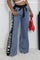 These high-waisted wide-leg jeans feature braided belt detailing and distinctive splicing on the sides, combining style with structure. The high-rise fit enhances your silhouette while the wide legs offer comfort and ease of movement. Perfect for creating a polished, contemporary look with a subtle artisanal touch.
