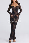 Elevate your evening wardrobe with this expertly designed two-piece set featuring a strapless bodycon dress paired with an intricate hollow-out lace vest. The form-fitting silhouette accentuates your natural curves while the delicate lace detailing adds sophisticated dimension. A striking extended back slit provides graceful movement and visual drama. Perfect for upscale events, galas, or nights when you want to make a refined statement. This curated pairing delivers polished versatility—wear together for maximum impact or separate for layered styling options.