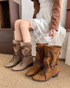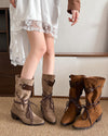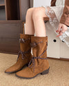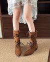 Lace-up pointed toe mid-calf Maillard Western cowboy knight boots
