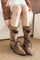 These Lace-up pointed toe mid-calf Maillard Western cowboy knight boots combine timeless Western style with expert craftsmanship. Designed for durability and comfort, their mid-calf height offers versatile wear, while the pointed toe adds a sharp, classic silhouette. The secure lace-up closure ensures a tailored fit, making them ideal for both rugged outdoor activities and sophisticated casual looks. Crafted with attention to detail, these boots blend historical knight-inspired elements with Western cowboy aesthetics for a distinctive statement in footwear.